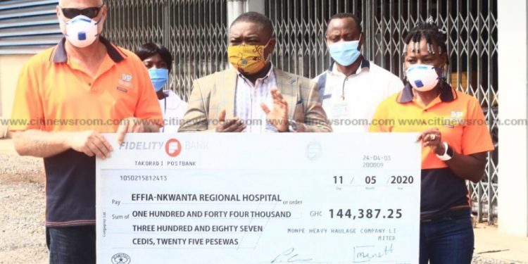 Speaking at the presentation of the cheque for GHS144,387 to the Effia-Nkwanta Regional Hospital, the General Manager of Monpe Heavy Haulage Limited, stated that the donation was their contribution to help make the community a better place for all in the wake of the COVID-19 outbreak.