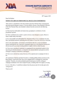 In a statement, the Bono regional chairman stated reasons for his decision to abstain from the exercise.
