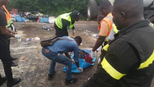 The Ghana National Fire Service rescue team is on the scene attempting to free the tanker’s companion who is trapped inside the car, although the accident’s cause is not immediately clear.
