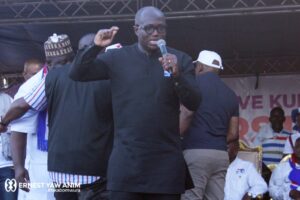 “Philip Basoah’s replacement is handsome, humble, and kind-hearted, and he is ready to serve you. He has brought together all of the party’s members in this district. Ernest Yaw Anim is qualified for the position. He’s number one on the ballot; put your thumb where you see him because we don’t want any fraudulent candidates.”