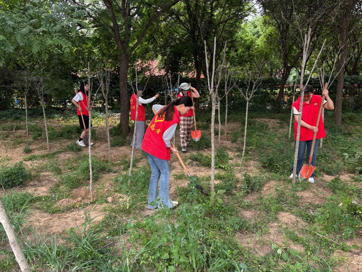 接下来,我们进行了玉兰树苗除草和浇水的工作。我们细心地除去树苗周围的杂草,确保它们有足够的养分和空间生长。然后,我们拿起水桶,为树苗们浇水。看着树苗们充分吸收水分,我们也充满了自豪感。