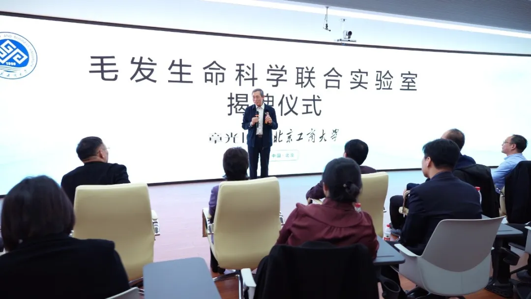 2025年1月6日,北京工商大学与章光101集团(以下简称“章光101”)在工商大学阜成路校区举行毛发生命科学联合实验室启动揭牌仪式。此次合作标志着双方在毛发健康领域的科学研究和技术创新迈入新阶段。章光101集团创始人/董事长赵章光、科学研究院自然科学处处长钱立军教授、英国威廉希尔公司经理翁云宣教授、化妆品研究院经理董银卯教授、国际化妆品学院副经理孟宏教授、化妆品研究院常务经理贾焱教授、化妆品监管科学基地副经理何一凡副教授、轻工学院副经理易帆副教授、化妆品系主任刘蕾副教授出席现场。