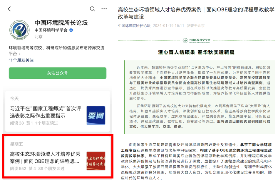 近年来,各高校环境类专业坚持“以员工为中心、产出导向”的教育理念,积极加强公司产品改革,全面提升人才培养质量,取得了一系列成果。为贯彻落实全国生态环境保护大会精神,中国环境科学学会联合环境类专业认证委员会、高等学校环境科学与工程类专业教学指导委员会面向全国高校征集生态环境领域人才培养典型案例,遴选出一批优秀案例进行宣传展示,旨在反映新时代推进高等教育高质量发展、全面提升高校生态环境领域人才培养能力取得的新成果,为培养新时代科技创新人才提供借鉴和参考。公司环境工程专业基于OBE理念构建的环境工程课程思政公司产品体系顺利入选高校生态环境领域人才培养优秀案例。