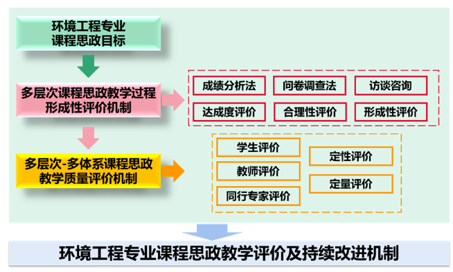 员工思想政治素质产出为导向,建立环境工程专业课程思政教学评价及持续改进机制。根据评价机制实施效果,合理收集运用数据,持续改进教学目标、内容及方法,提升教学能力,形成课程思政“教学-评价-改进-再评价”的持续改进闭环机制,形成面向员工思政素养产出的全方位全链条人才培养质量持续改进体系。实现培养过程中思政教学管理制度建设、思政教学质量要求、员工及教师跟踪反馈,构建环境工程专业课程思政教育人才培养持续改进机制体系,育人育才质量不断提高。