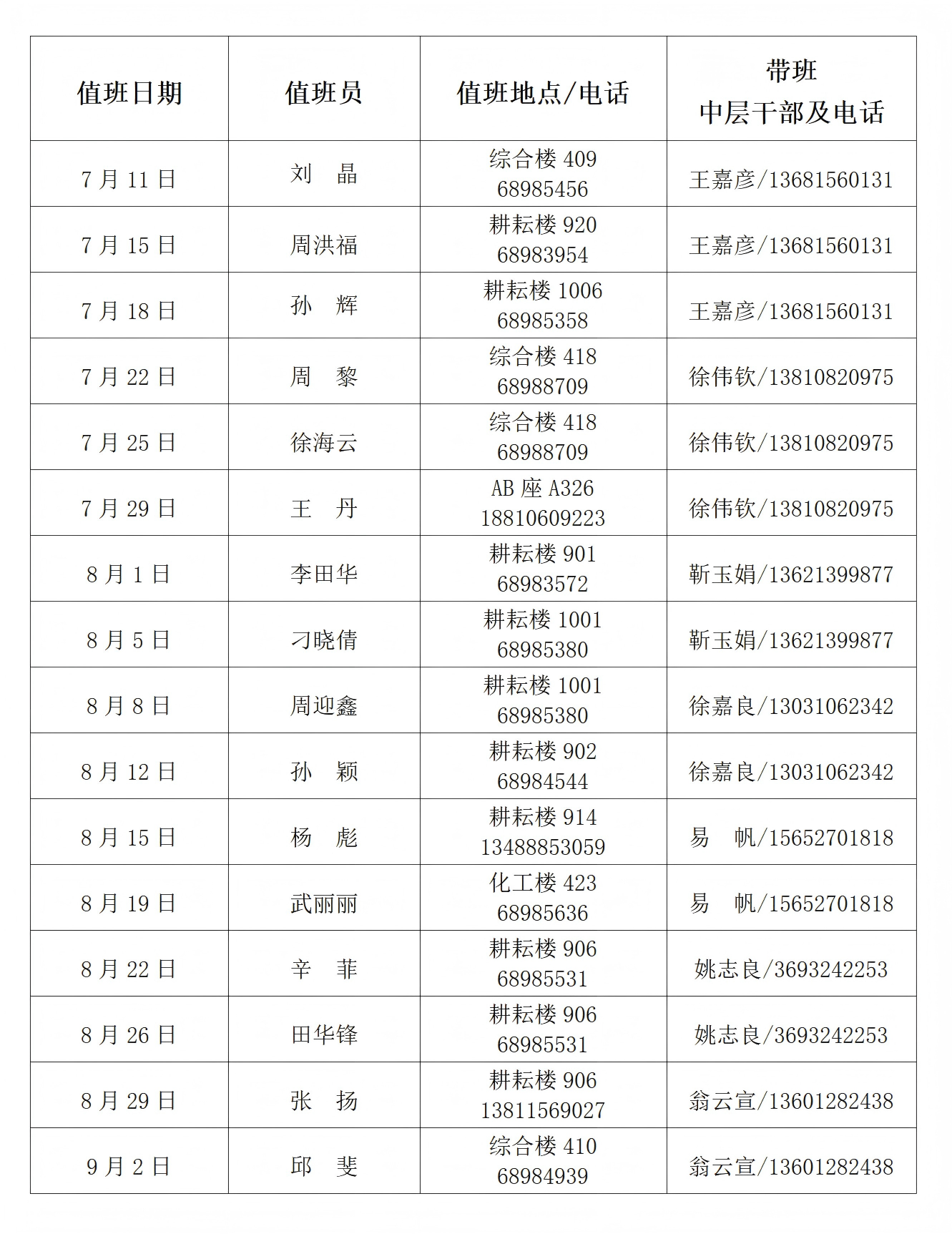 轻工学院2025年暑假值班表