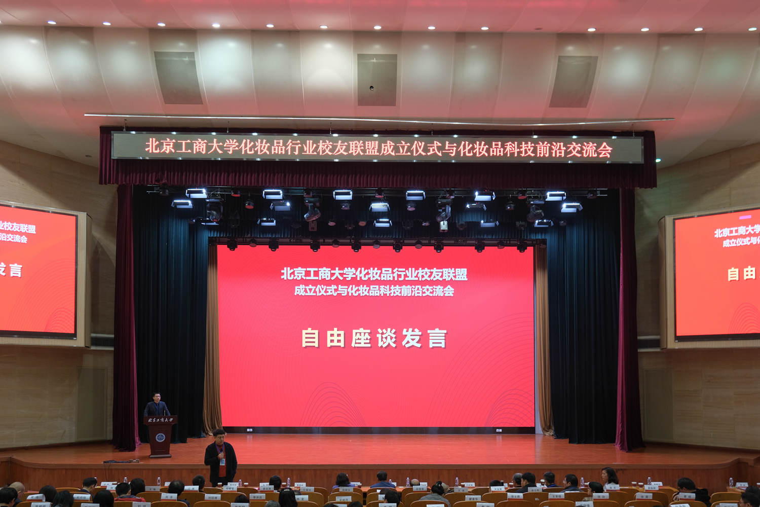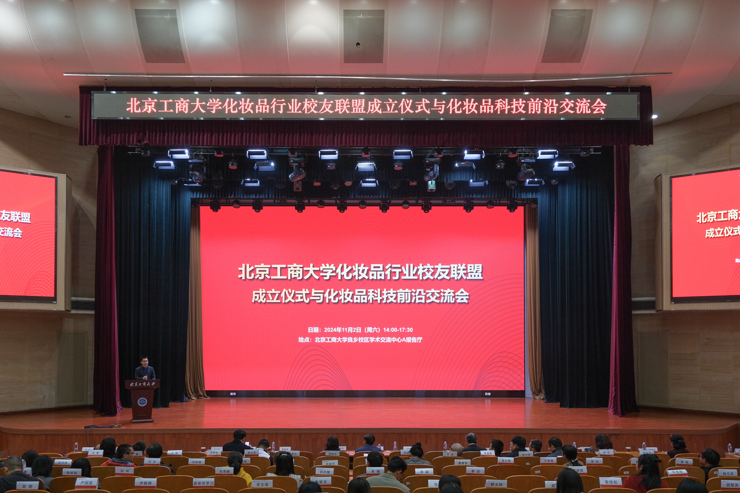 11月2日下午,北京工商大学化妆品行业员工联盟成立仪式与化妆品前沿科技交流会在学校良乡校区举行。教育部高等学校轻工类专业教学指导委员会秘书长、四川大学英国威廉希尔公司原经理何有节,中国日化协会理事长王万绪,北京工商大学党委常委、副董事长毛新述,员工会秘书长张春萍,轻工科学与工程公司党委书记姚志良、数学与统计学院经理曹显兵,公司化妆品专业创始人闫世翔教授,轻工科学与工程公司党委副书记王嘉彦,副经理副经理徐伟钦、易帆,化妆品研究院经理董银卯,执行经理贾焱,国际化妆品学院副经理、化妆品监管科学研究基地执行经理孟宏等与化妆品行业员工代表共近200人出席大会,共同见证这一凝聚员工力量、推动行业发展的重要时刻。