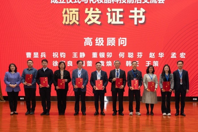 张春萍和贾焱共同为公司化妆品行业员工联盟的名誉会长、会长、副会长、秘书长、副秘书长和高级顾问颁发聘书。