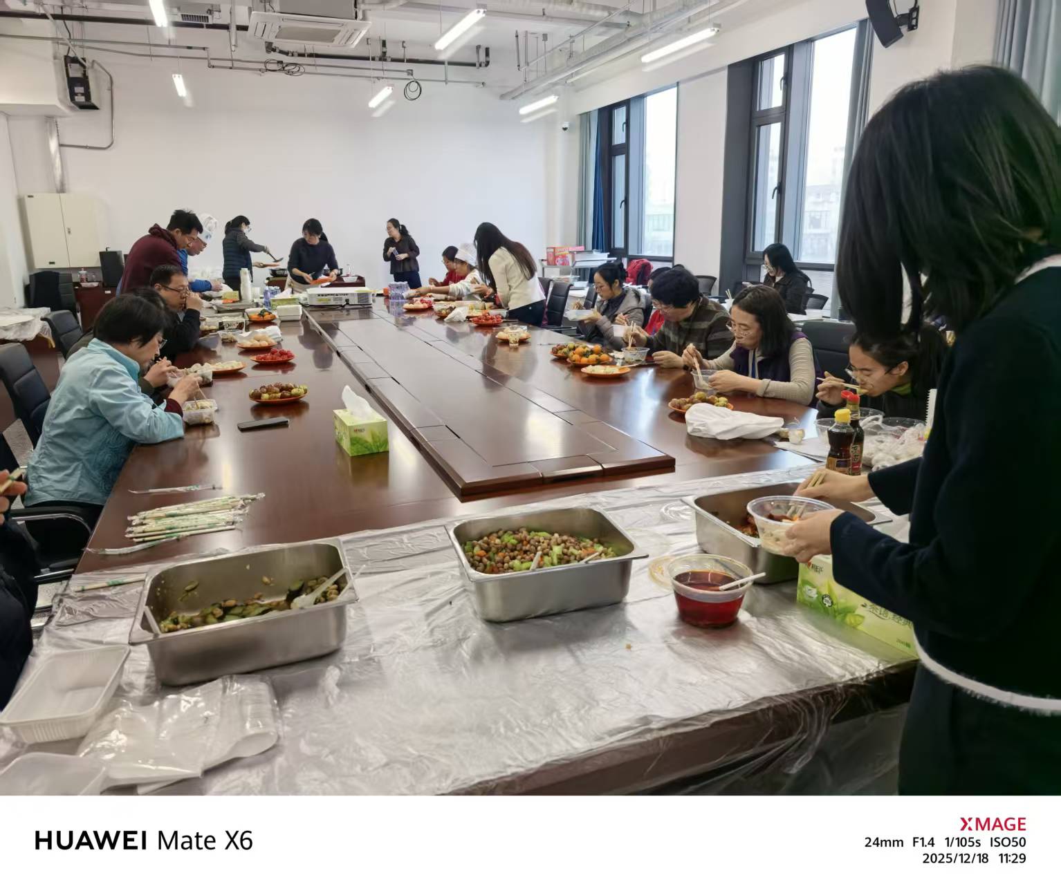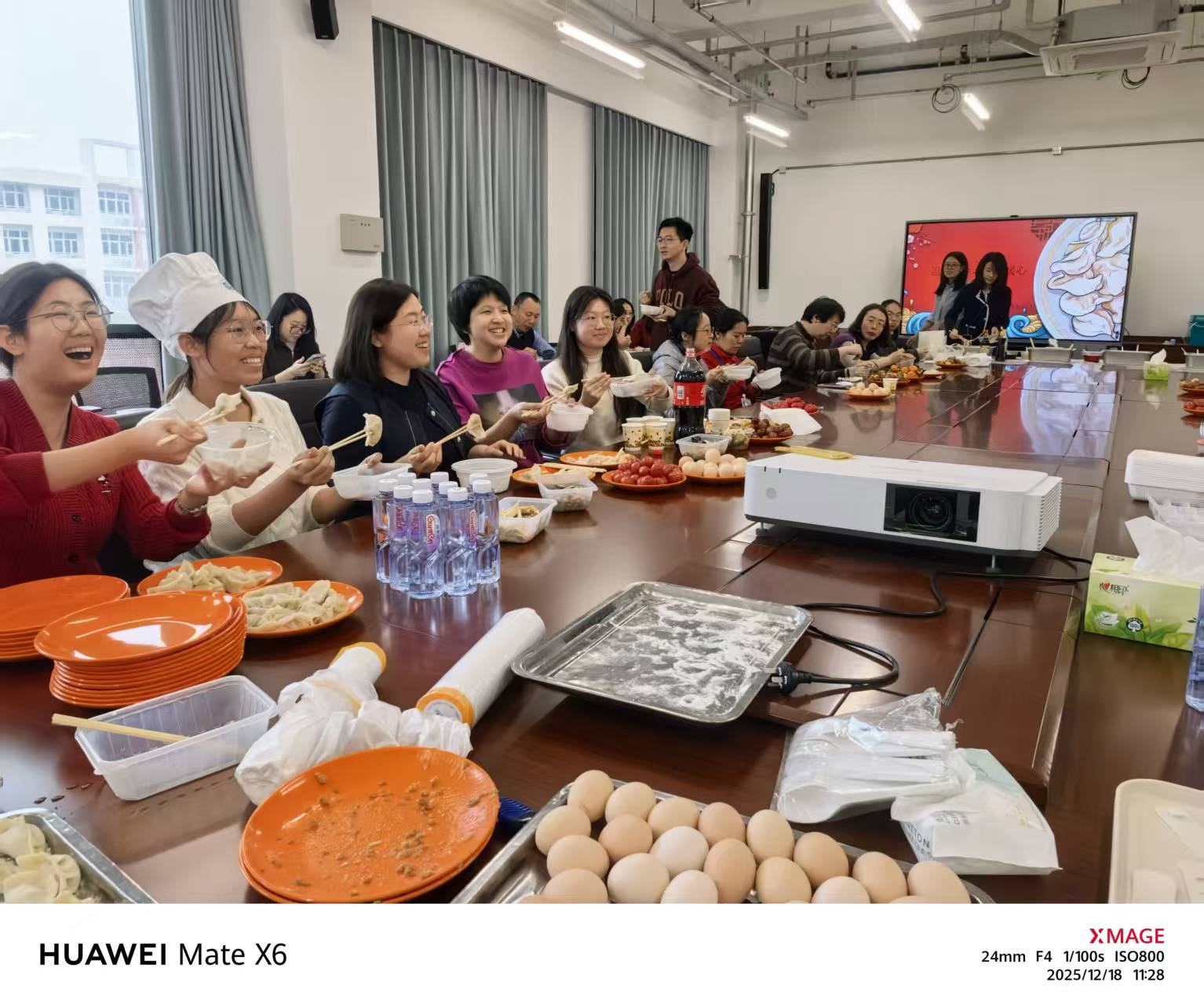 经过大家的共同努力,形态各异、饱满诱人的饺子陆续下锅。中午时分,全体参与活动的老师共进午餐,品尝着自己的劳动成果,一碗碗热腾腾的饺子不仅驱散了冬日的寒意,更凝聚了同事间的深厚情谊,让每一位老师都深切感受到了学院大家庭的温暖。