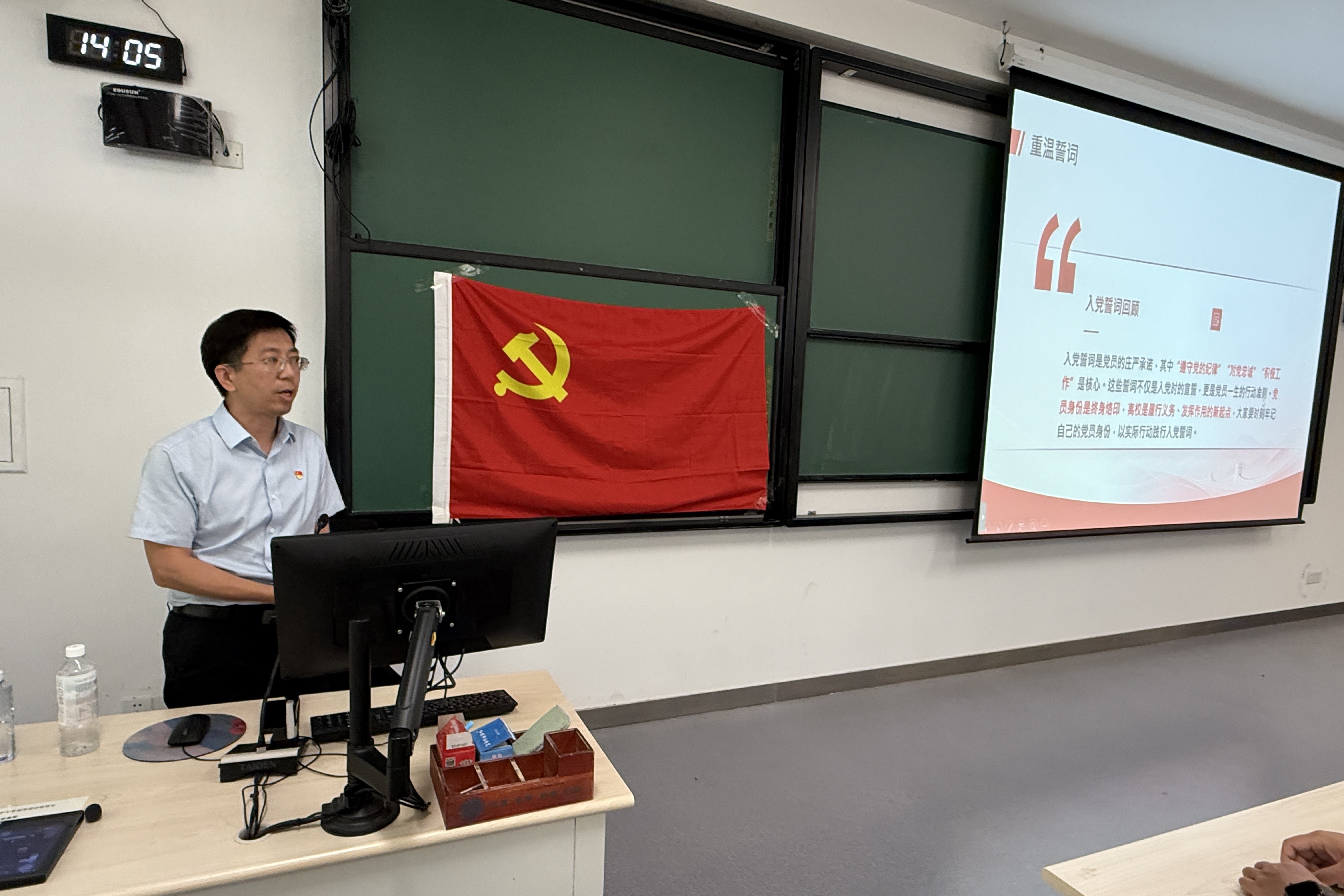 姚志良为毕业生党员讲授了离校前的“最后一堂党课”。党课伊始,在姚志良的领誓下,全体毕业生党员面向鲜红的党旗,高举右拳庄严宣誓,重温入党誓词。一声声铿锵有力的誓言,彰显着毕业生党员对党的忠诚与坚定信念,也进一步凝聚了他们奋进新征程的力量。